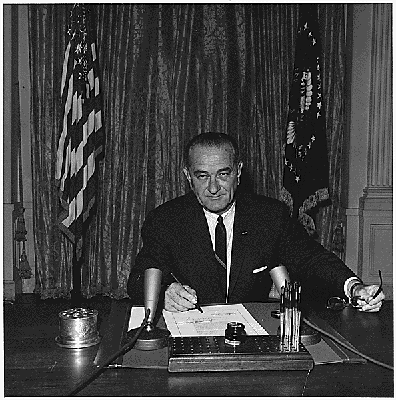 Lyndon Johnson firma la risoluzione del Golfo del Tonchino